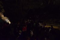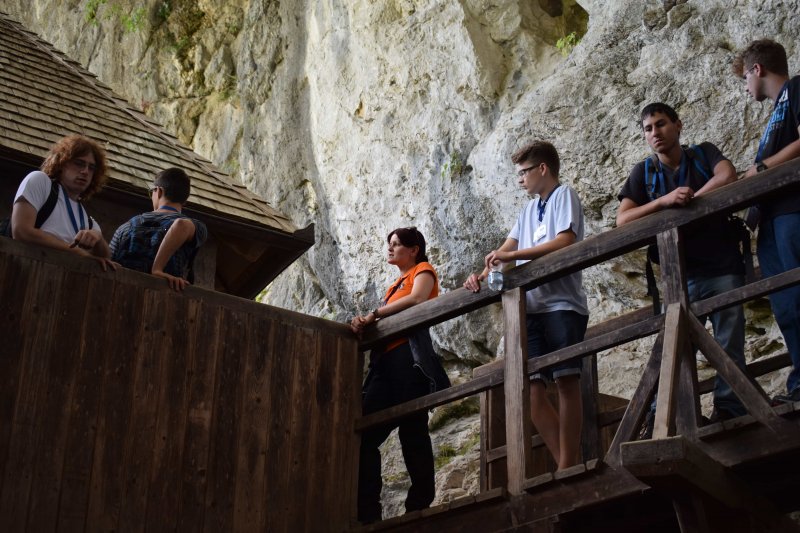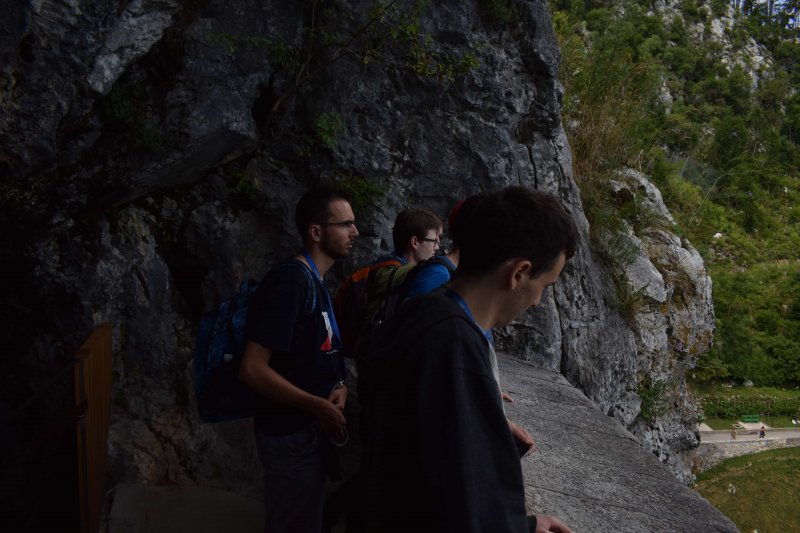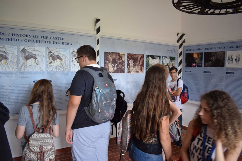 After breakfast, the teams and their hosts boarded a bus heading towards their first destination – Postojna cave – where there was a guided tour through the cave’s tunnels. Caves such as the Postojna cave and many more in Slovenia are full of limestone stalactites and stalagmites a rare phenomenon in the world, but typical for the Karst region in Slovenia. The Postojna cave has a small integrated railway system which the visitors ride around the tunnels with for some extra safety and excitement.