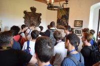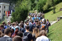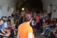 When the tour of the Postojna cave was over, the participants had lunch, keeping their energy level high and ready for the last stop of the excursion. This last stop was situated a couple of minutes away from the cave, called Predjamski grad, which is a castle built within a cave mouth thus the name Predjamski grad, literally meaning a castle in front of a cave. The castle has many legends, the most famous ones are the legends of Erazem of Predjama, who was a knight in the 15th century and a renowned robber. He is mostly known for being killed after a long siege on the Predjama castle where he stayed. The reason behind why this battle is so famous is because Erazem used the tunnels in the cave to smuggle supplies into the castle during the siege. If it wasn’t for one of his man betraying him in the end he might have even survived because of the tunnels.